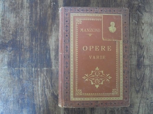 In 4∞picc.: pp. 781. Leg. edit. con ricchi fregi in oro al piatto e al dorso. Macchie ossidate alle ultime carte al taglio testa. Lievi tracce d`uso. Dorso allentato. Dall`indice: Adelchi, Discorso sopra alcuni punti della storia longobardica in Italia, Il Conte di Carmagnola, ecc.