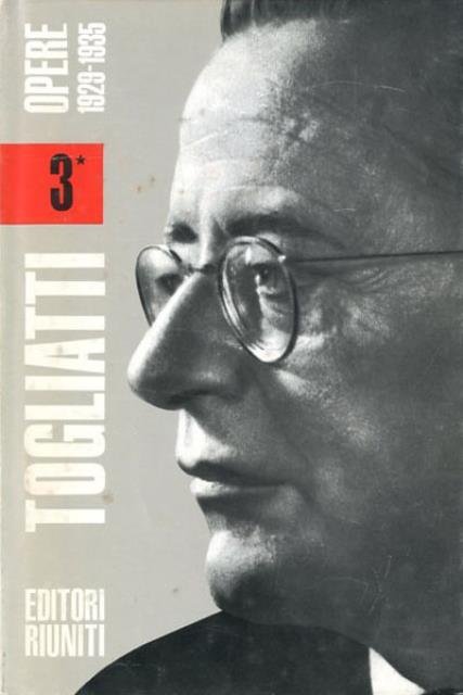 CCCXXXIII, 456 p. ; 22 x 15 cm. Questa edizione delle "Opere" di Palmiro Togliatti (1893-1964) - segretario del PCI e dirigente della Terza Internazionale -, che mira a riunire gli scritti, i discorsi e i principali documenti della sua quasi cinquantennale attività intellettuale e politica, consta di sei volumi così articolati: 1. (1917-1926); 2. (1926-1940); 3. (1940-1947); 4. (1947-1956); 5. (1956-1964); 6. (Bibliografia, indice per materie, cronologia della vita). A cura di Ernesto Ragionieri. Coedizione con l'Istituto Gramsci di Roma. . Legatura editoriale in similpelle rossa con impresso il cognome dell'autore in oro al piatto e al dorso, sovraccoperta illustrata con fotografia dell'autore in b/n. . Codice libreria 803.