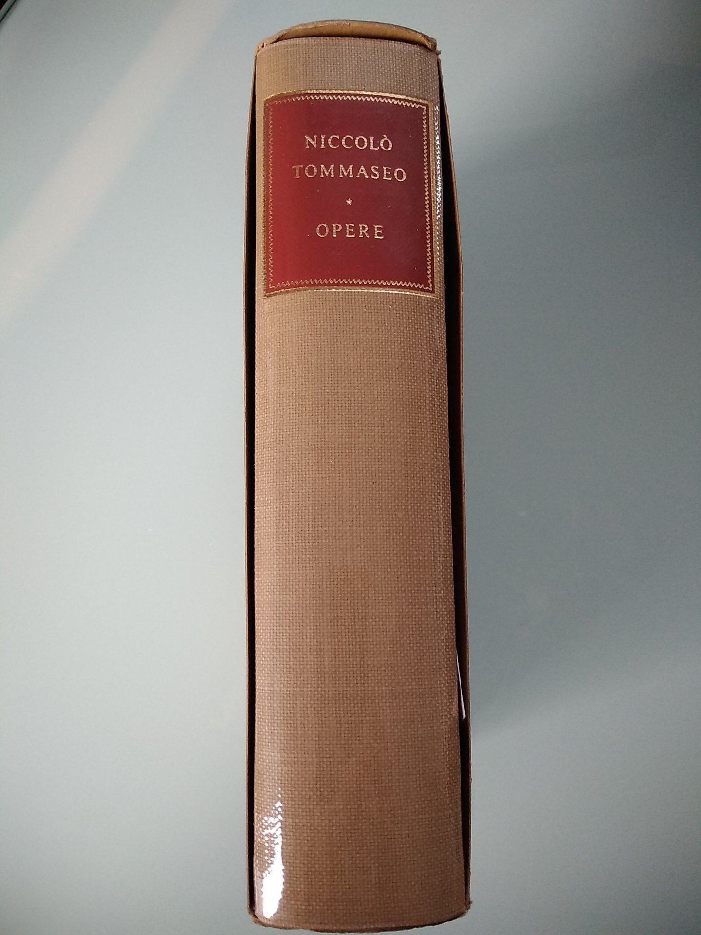 Raccolta di opere dello scrittore, poeta e patriota italiano dell'Ottocento Niccolò Tommaseo: Poesie, Salmi di Davide, Visione di Preci e inni della Chiesa, Canti del popolo greco, Canti illirici, Fede di bellezza, Diario intimo, Esempi di generosità proposti al popolo italiano, Dell'animo e dell'ingegno d'Antonio Marinovich, Di Giampietro Vieusseux e dell'andamento della civiltà italiana in un quarto di secolo, Commento alla Divina Commedia, Antonio Rosmini, Samuele Biava e i romantici, Il supplizio d'un italiano in Corfù, Lettere