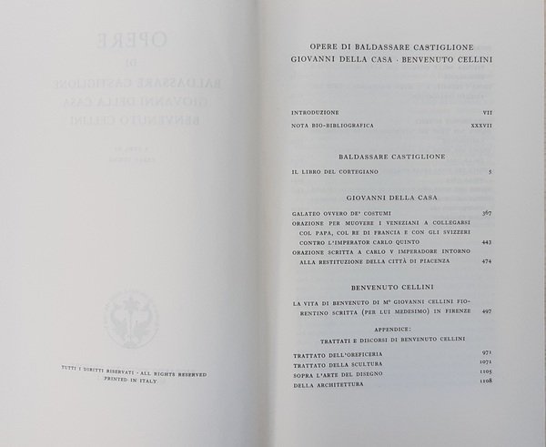 - Castiglione, Baldassarre, Della Casa, Giovanni, Cellini, Benvenuto.