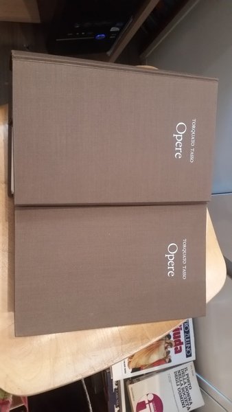 2 voll.A Cura: Mazzali Ettore Rilegatura: Cartonato telato marrone foderina acetata con scritte in azzurro . Stato: . Caratteristiche: comprendono:Gerusalemme liberata - Aminta - Rime - I re Torrismondo - Dialoghi - Discorso del poema eroico - Lettere. Stampati con carattere Garamond su carta vergata Ventura.