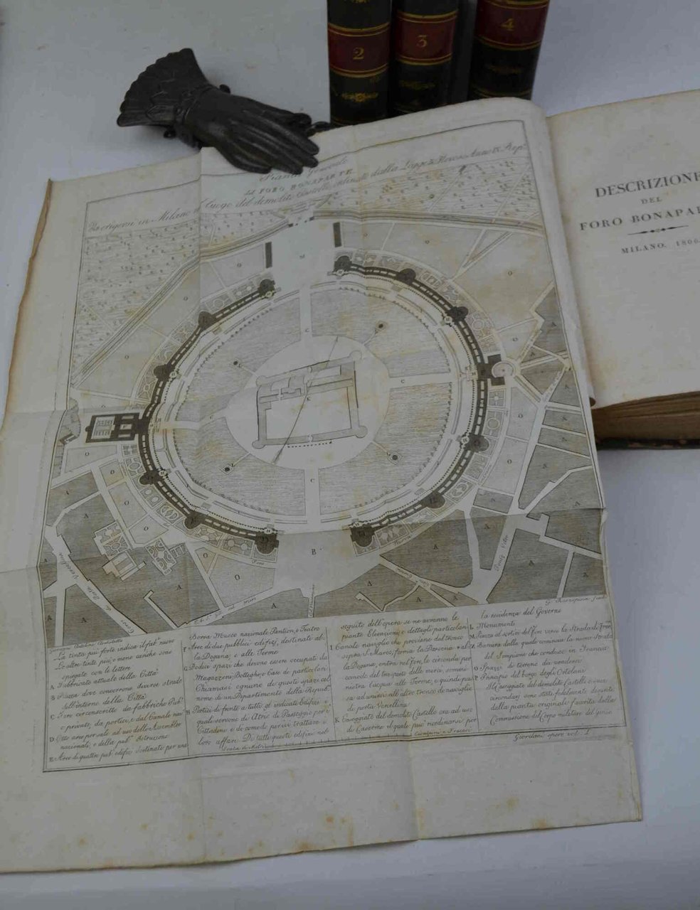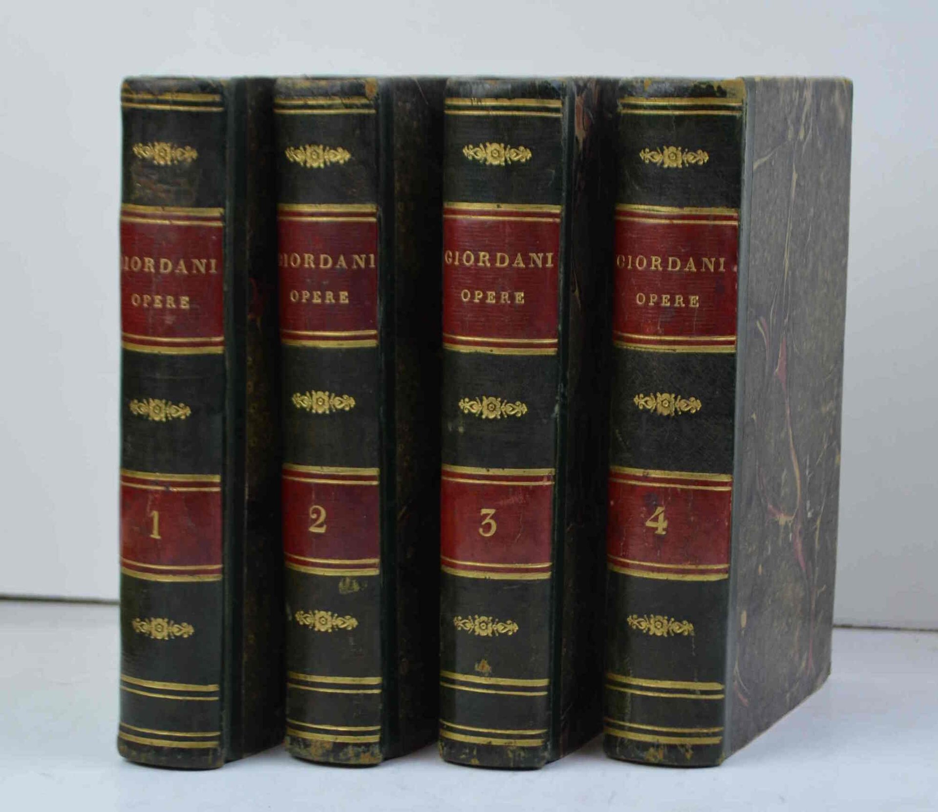 Sedici parti legate in quattro volumi di cm. 17,5, pp. oltre 2.000. complessive. Con 17 tavole f.t. incise in rame fra cui una ripiegata (pianta del Foro Bonaparte). Solida ed elegante legatura coeva in mezza pelle con piccole punte, dorsi lisci con fregi in oro e titoli su doppi tasselli. Esemplare genuino e ben conservato con solo qualche arrossatura sparsa e segno a matita nel testo . Bell'edizione delle opere complete del Giordani.