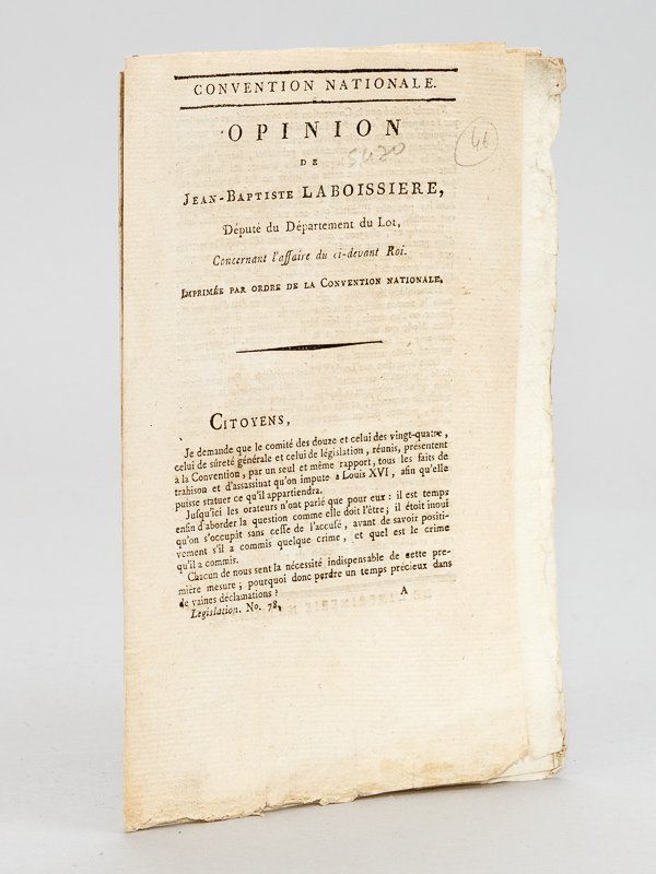 Opinion de Jean-Baptiste Laboissière, Député du Département du Lot, concernant l'affaire du ci-devant Roi [ Suivi de :] Résultat des différentes opinions prononcées à la Convention Nationale par J. B. Laboissière, député du Lot
