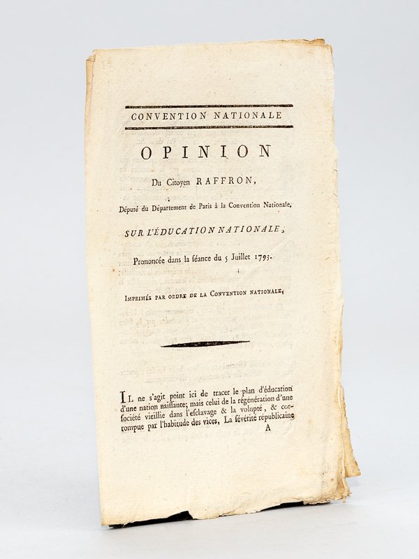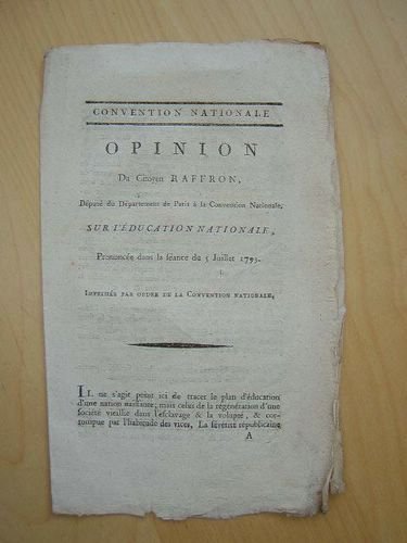 Opinion du Citoyen Raffron, Député du Département de Paris à la Convention Nationale, sur l'Education Nationale, prononcé dans la Séance du 5 juillet 1793. [ édition originale ]