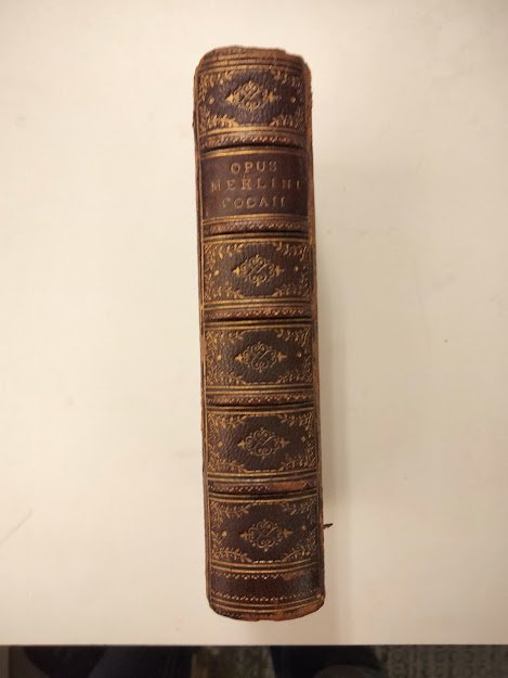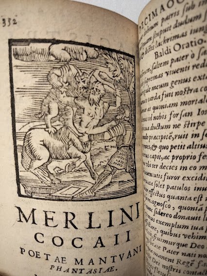In 8° piccolo,pp.542, legatura mezza pelle, titoli oro al dorso ,bella marca tipografica al frontespizio: Aquila in ovale con motto: "hinc silens hinc loquax", 27 vignette xilografate a mezza pagina nel testo, capilettera floreali, qualche carta brunita e alcune lievi gore senza pregiudizio al testo, latina Merlin Cocai, è lo pseudonimo letterario di Folengo Teofilo (Mantova 1491-1508). Battezzato Gerolamo, nel 1508 si fece Benedettino assumendo il nome di Teofilo. Folengo è conosciuto soprattutto per l'Opus macaronicorum, che ebbe ben 4 redazioni tra loro assai diverse, note come: Paganini, 1517; Toscolana, 1521; Cipadese, 1539-40; Vigasio Cocaio, 1552 postuma. Qui è riprodotta l'ultima. Le Maccheronee contengono: la Zanitonella, che assente nella prima redazione è stata poi sviluppata autonomamente, per amplificazione di due egloghe. La Moscheide, poema eroicomico in 3 libri e il Baldus, poema di 25 libri in esametri.