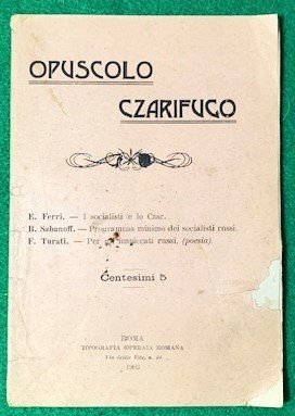 Opuscolo Czarifugo. 1) E. Ferri. - I Socialisti e lo Czar; B. Sabanoff. - Programma minimo dei socialisti russi. F. Turati. - Per gli impiccati russi, (Poesia).