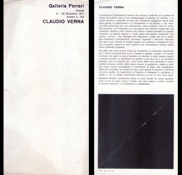 *Opuscolo mostra n.155 CLAUDIO VERNA. Galleria Ferrari Grafica - Verona. 2-22 dicembre 1971