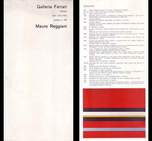 *Opuscolo mostra n.190 MAURO REGGIANI. Galleria Ferrari Grafica - Verona. 29 aprile 1975