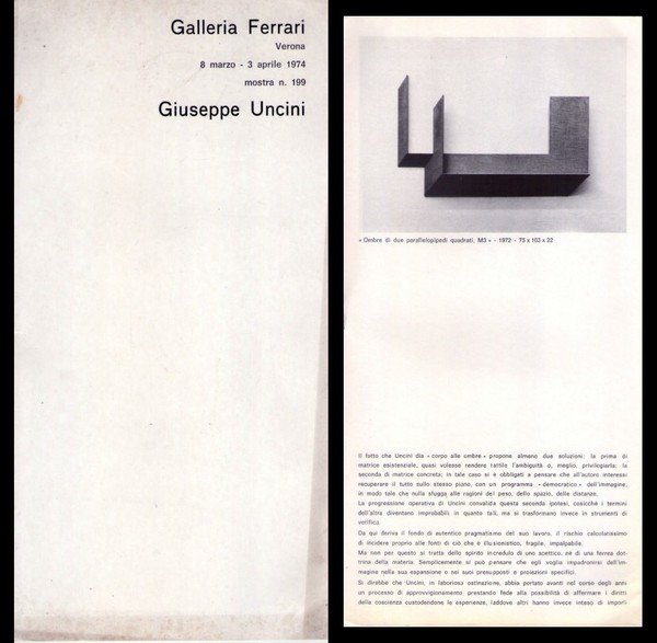 *Opuscolo mostra n.199 GIUSEPPE UNCINI. Galleria Ferrari Grafica - Verona. 8 marzo - 3 aprile 1974