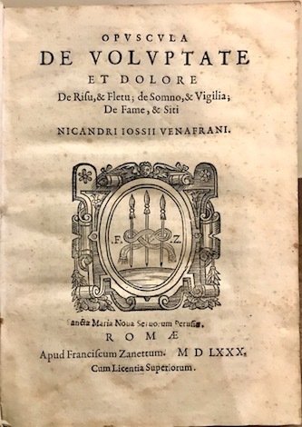 Opuscula de Voluptate et Dolore, de Risu, & Fletu; de Somno, & Vigilia; de Fame, & Siti Nicandri Iossii Venafrani