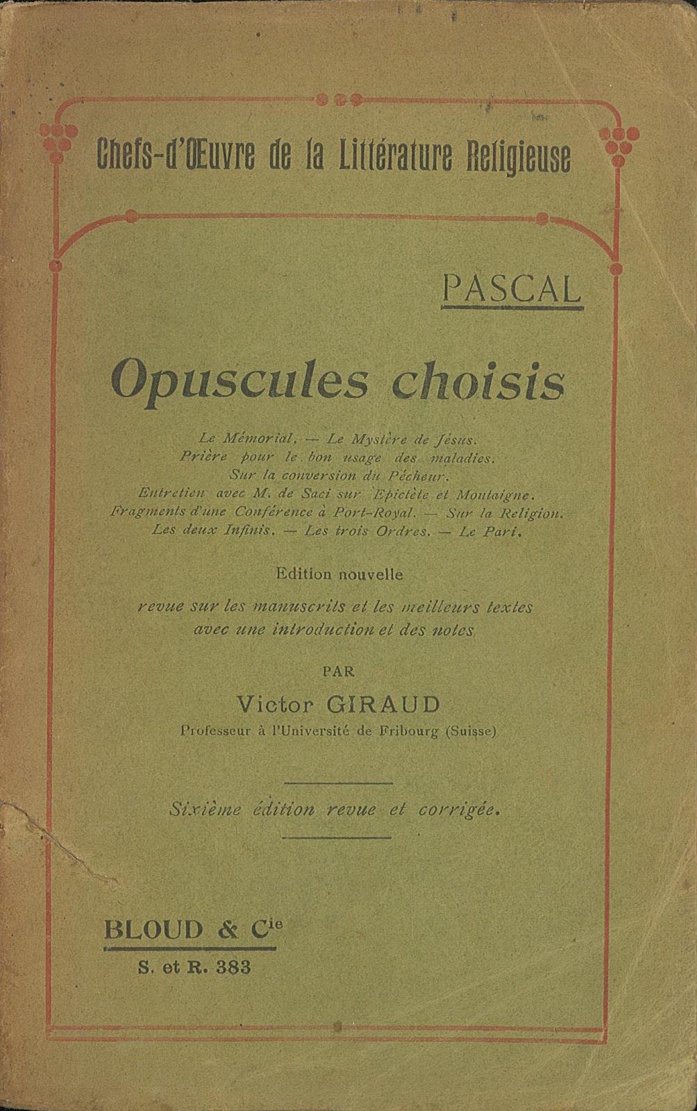 Collana "Chefs-d'Oeuvre de la Litterature Religieuse" 383. Testo in francese. Introduzione e note di Victor Giraud. Volume non rifilato in parte intonso. Ingiallimento generale. Evidente usura da scaffale con strappo e pieghe all'esterno
