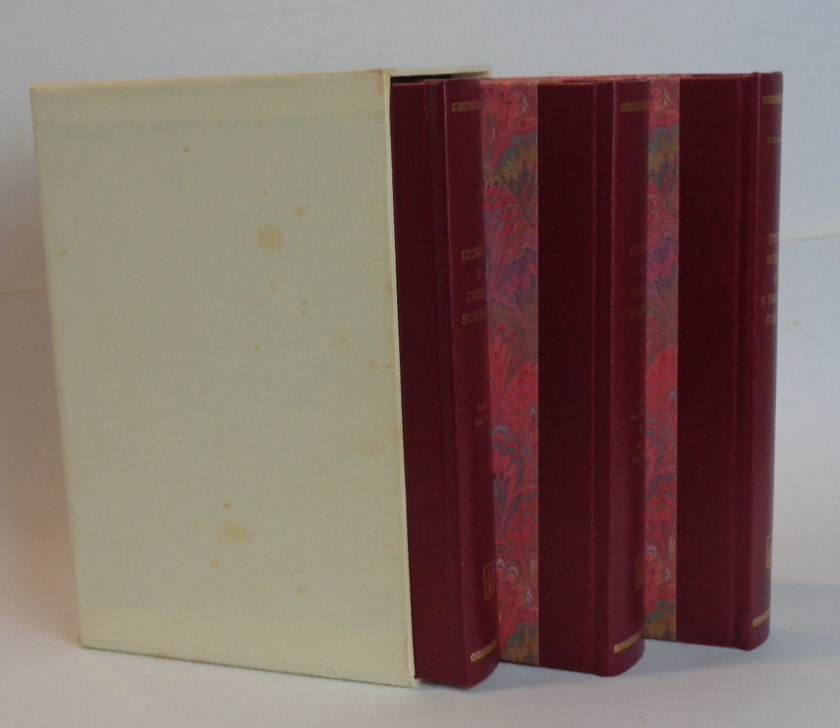 Collana della Società internazionale di studi francescani, Reprints 1-1*-2. Tre volumi (21,5 cm) di [XI-397]-[IX-433-110]-[IX-386] pagine, legature editoriali in mezza finta pelle con titoli dorati al dorso, in custodia rigida muta di colore bianco. Ottime condizioni. Volume 1: 'Opuscules de critique Historique', Tome I, fasc. I-VI (Paris, Librairie Fischbacher, 1901-1903). Volume 2: 'Opuscules de critique Historique', Tome II, fasc. VII-XVII (Paris, Librairie Fischbacher, 1903-1914) e Tome III, fasc. XVIII (Paris, Librairie Fischbacher, 1914-1919). Volume 3: 'Etudes inédites sur S. François d'Assise' (Paris, Librairie Fischbacher, 1932).