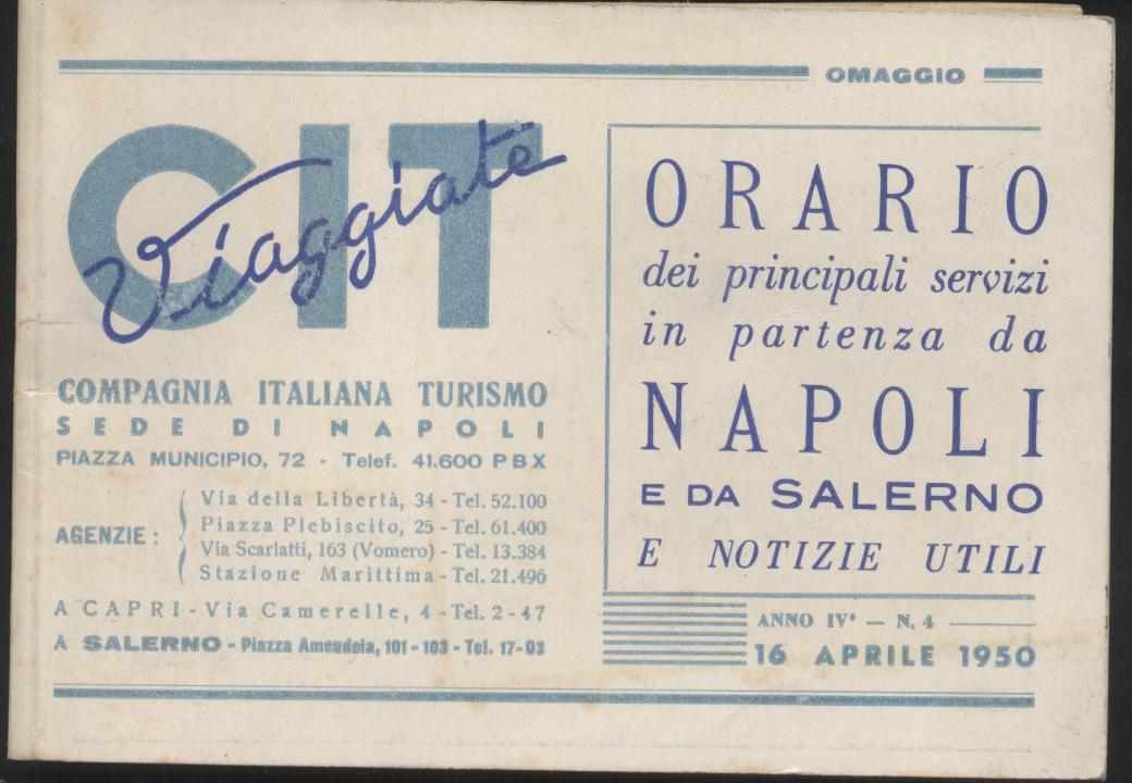 Orario dei principali servizi in partenza da Napoli e da Salerno e notizie utili - 16 aprile 1950