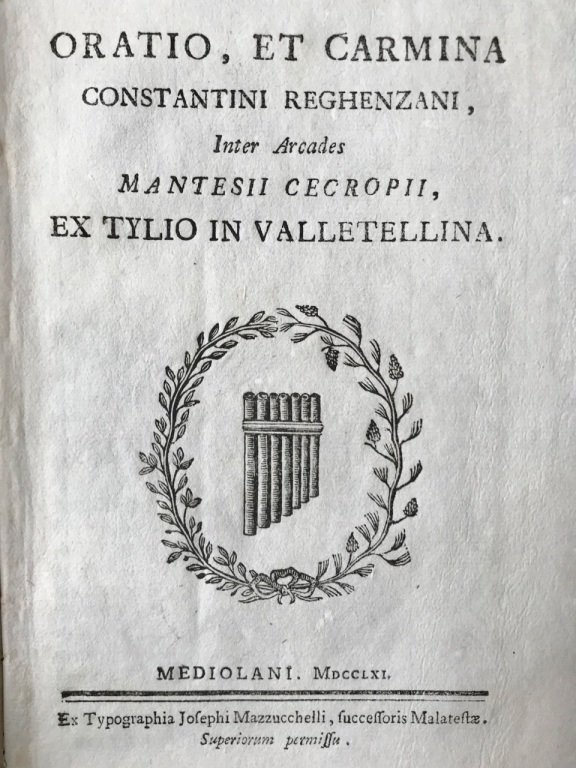 Oratio et carmina [.] inter arcades Mantesii Cecropii, ex Tylio in Valtellina.