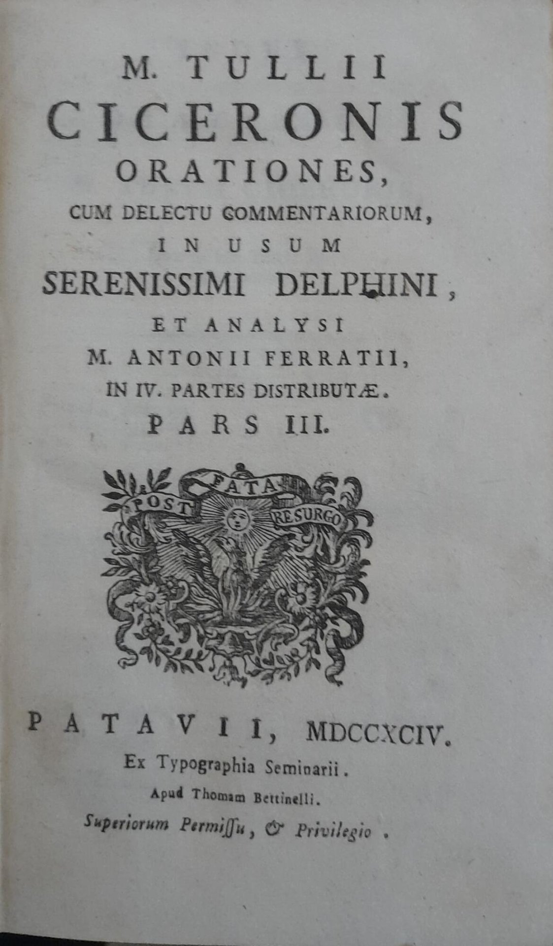 Orationes cum deluctu commentarium, in usum serenissimi delphini et analysi M. Antonii Ferratii (pars III)