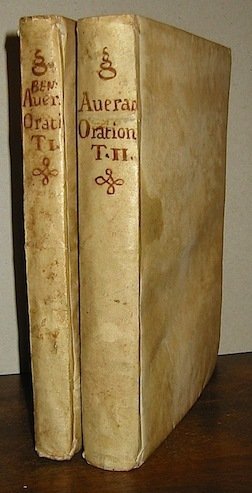 4to (cm. 23,7), 2 Voll., 6 cc.nn., XXXII p., 1 c.nn., 200 pp., 1 c.nn.; VIII-300 pp., 76 pp., 30 pp. Frontis. in rosso e nero e num.si capilettera. Legature coeve in piena pergamena con titolo ms. al ds. Ottimo esemplare. Edizione originale. Non in Moreni.