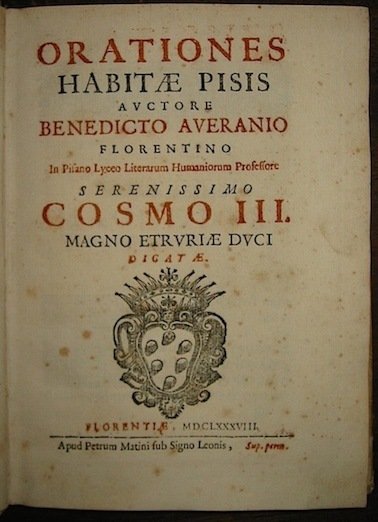Orationes habitae Pisis. Serenissimo Cosmo III. dicatae (et) Orationes habitae Pisis. Serenissimo Ferdinando Etruriae Principi dicatae, Opus postumum
