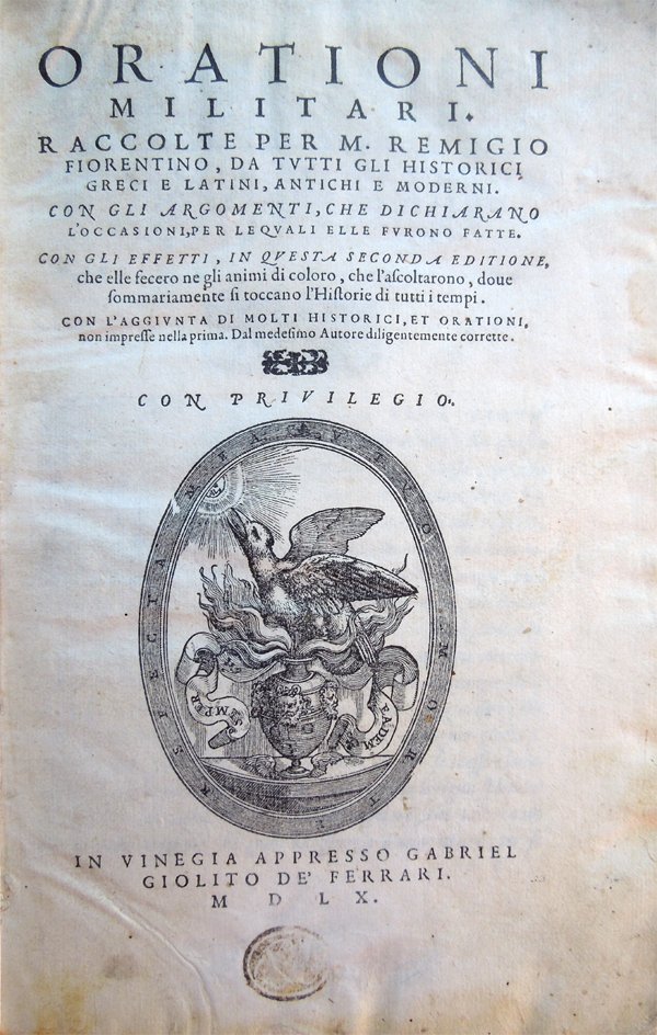 Orationi militari. Raccolte per M. Remigio fiorentino, da tutti gli historici greci e latini, antichi e moderni. Con gli argomenti, che dichiarano l'occasioni, per le quali elle furono fatte