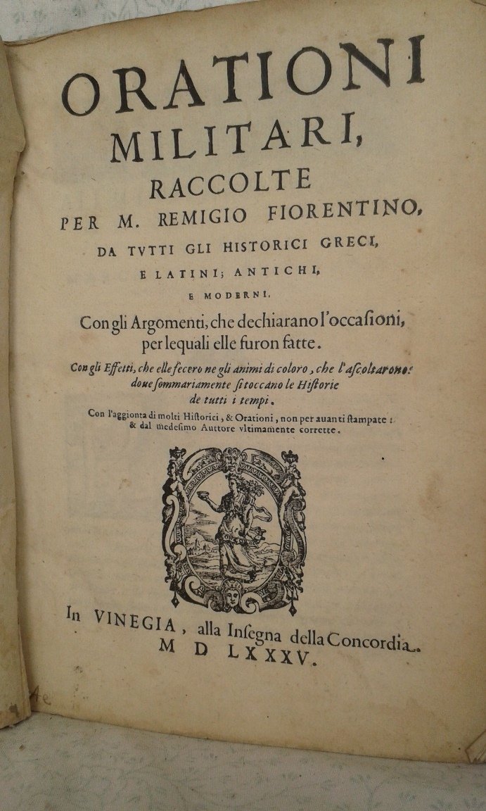 ORATIONI MILITARI, RACCOLTE per M. Remigio Fiorentino da tutti gli historici greci, e latini; antichi, e moderni con gli argomenti che dichiarano.
