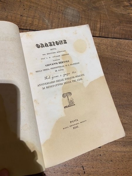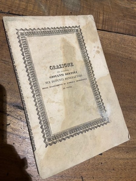 orazione del sacerote giovanni bertoli sui defunti benefattori degli stabilimenti di pubblica beneficenza in pavia