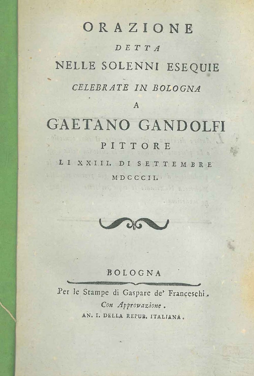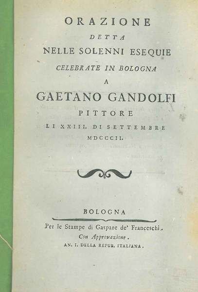 Orazione detta nelle solenni esequie celebrate in Bologna a Gaetano Gandolfi pittore li 23 settembre 1802