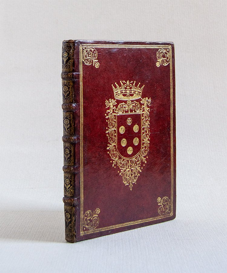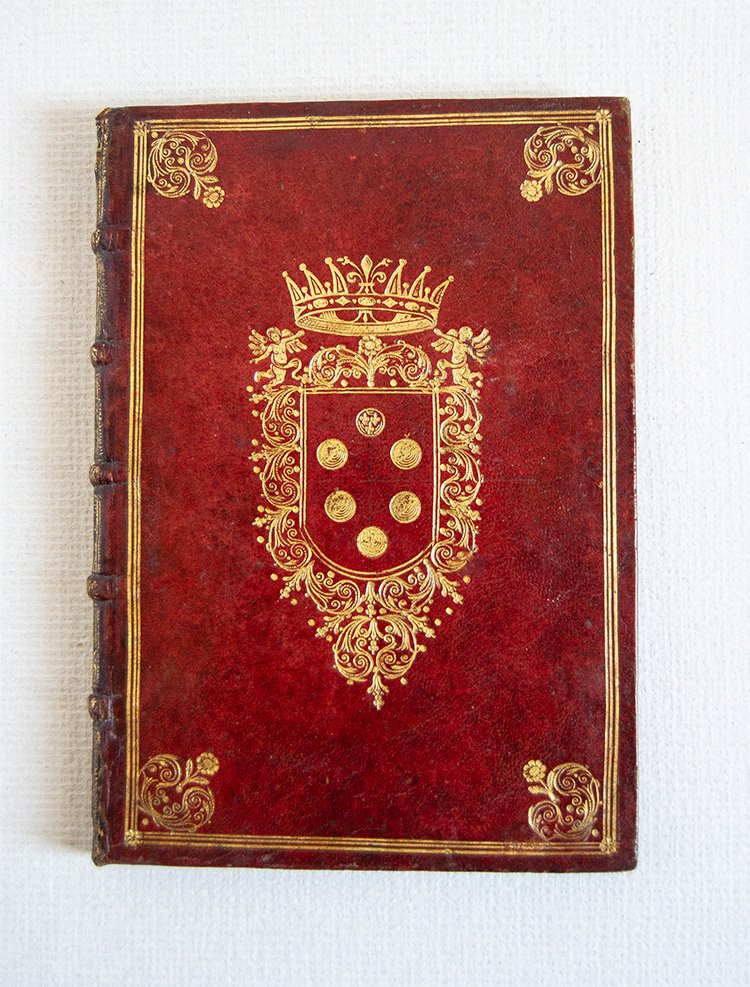 - Splendida legatura del XVII secolo in pieno marocchino rosso a grana fine con cornici di triplici filetti e ferri angolari impressi in oro ai piattii; al centro di ciascun piatto grande stemma mediceo coronato, anch'esso in oro. Dentelles alle unghiatue, tagli dorati, sguardie in carta marmorizzata; decorazioni impressi ai comparti del dorso a cinque nervi.