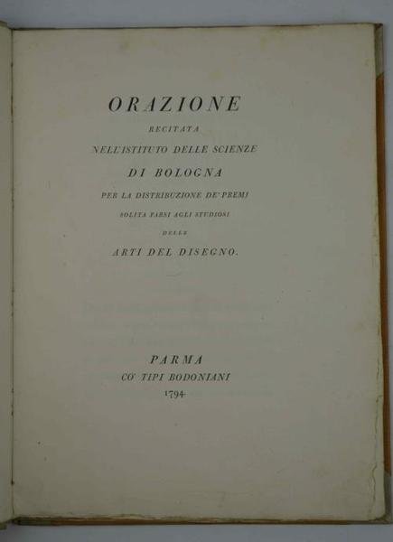Orazione recitata nell'Istituto delle Scienze di Bologna per la distribuzione de' premi solita farsi agli studiosi delle arti del disegno.