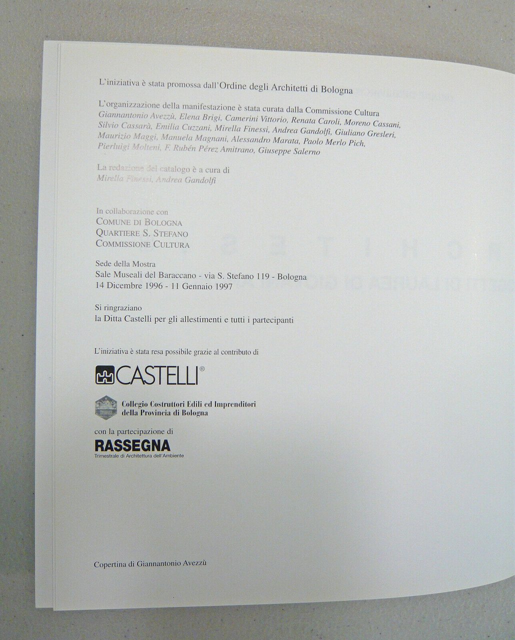 Ordine Architetti di Bologna,ARCHITESI 96.Catalogo mostra 1996[architettura,tesi