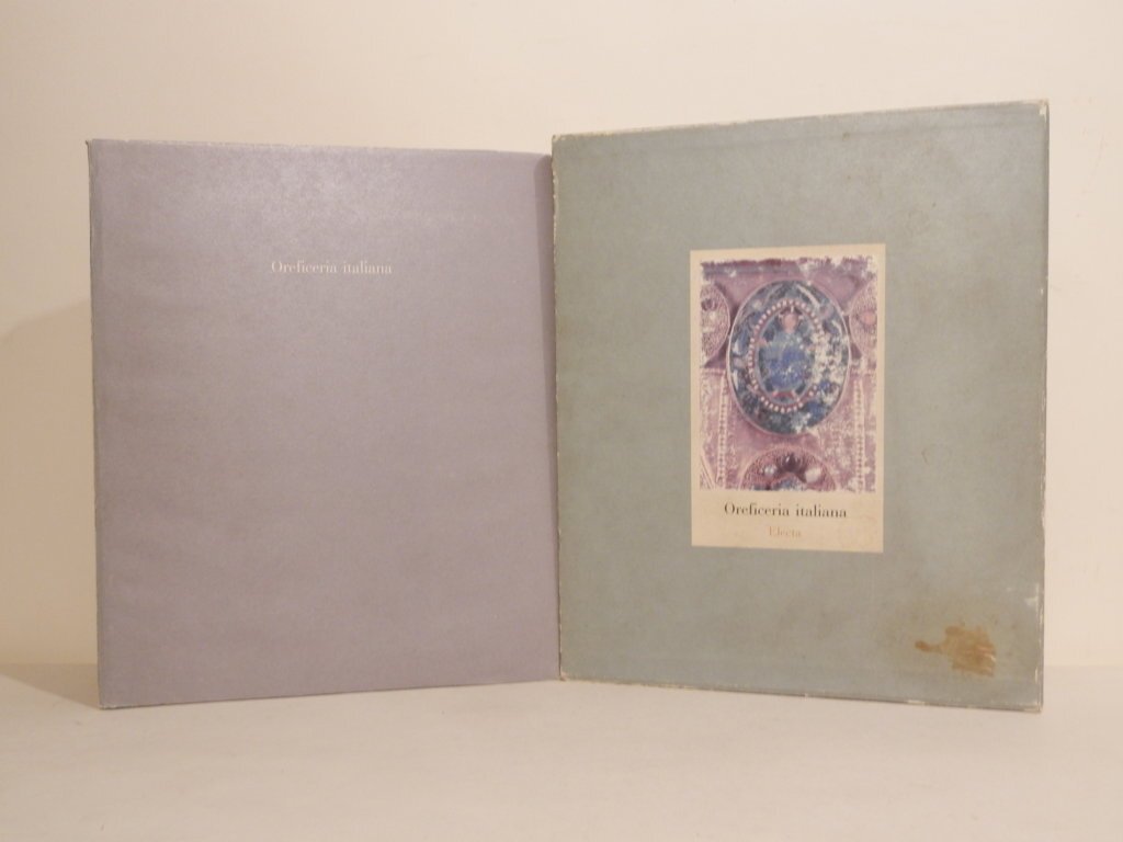 8°, 30 cm, pp. 229, legatura editoriale con sovracoperta, titoli al piatto e al dorso, entro cofanetto illustrato con titoli al piatto, 83 tavole con fotografie a colori applicate su carta. Leggero alone e macchie al cofanetto, lisi i margini, piccoli segni d'uso e strappetti, al cafanetto e alla sovracoperta, peraltro interno fresco e molto ben conservato. Capolavori di oreficeria italiana.. *** TUTTI I NOSTRI LIBRI SONO VISIBILI PREVIO CONTATTO MAIL O TELEFONO NELLA NUOVA SEDE DI MILANO: LIBRERIA COSMOPOLIS, VIA JOMMELLI, 22. ***