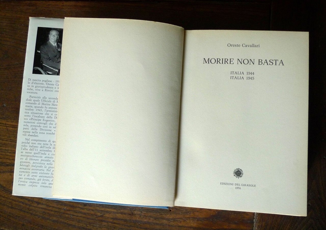 Oreste Cavallari,MORIRE NON BASTA.ITALIA 1944.ITALIA 1945.Edizioni del Girasole, Ravenna 1974,copertina rigida, rilegatura in tela,21,5x15,5 cm., pp.429,illustrazioni fotografiche in bianco e nerosu tavole fuori testo,collana GIRASOLE-TESTIMONIANZE,peso: g.900cod.9204CONDIZIONI DEL LIBRO: buone,strappetti ed imperfezioni alla sovraccoperta,fioriture alla carte di guardia