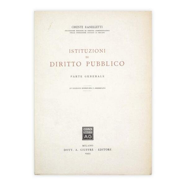 Autore: Oreste Ranelletti Titolo: Istituzioni di diritto pubblico - Parte Generale Edizione: XV Edizione Rinnovata e aggiornata - Dott. a. Giuffrè - Editore - Milano 1955 Dimensioni: 18 x 25 cm c.a. Pagine: 281 Copertina: Brossura Condizioni: Buone come da foto - Alcune sottolineature a matita nel testo