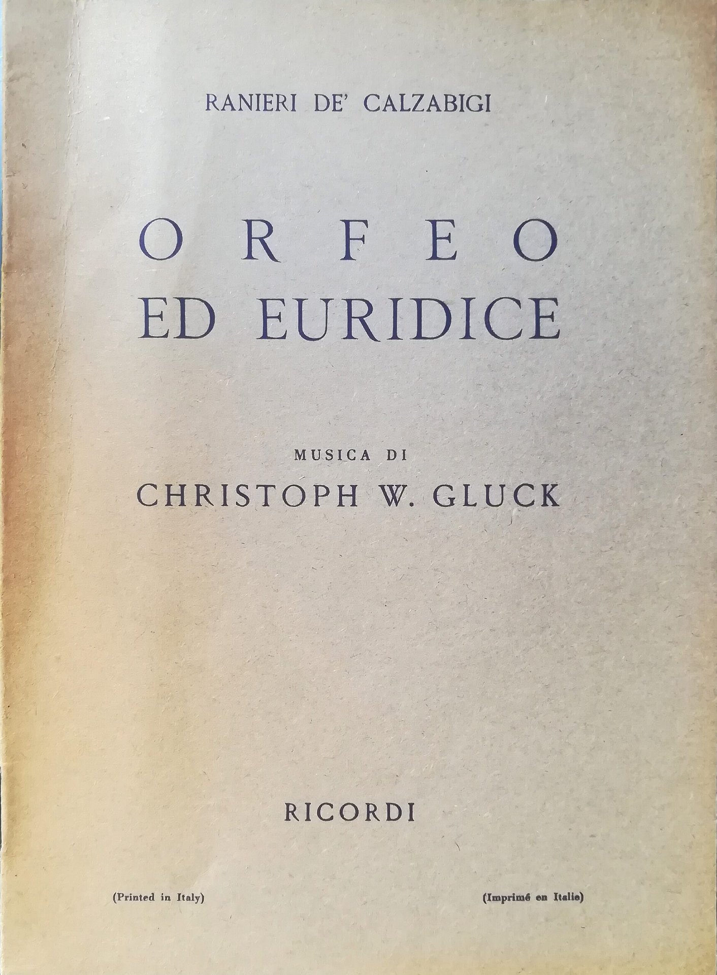 COD. 6806 Spillato, Pagg. 18 Musica di Christoph W. Gluck. Ottime condizioni, lievi tracce di usura, timbro di possesso al frontespizio - lingua: italiano kg. 0.06