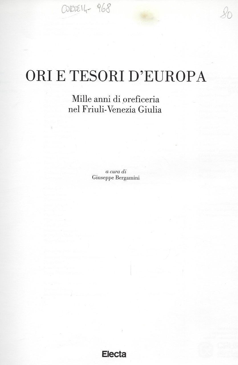 Ori e tesori d'Europa. Mille anni di oreficeria nel Friuli-Venezia Giulia.