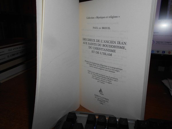 (Orientalismo) BREUIL Paul. Paris, Dervy-Livres, 1989. Des Dieux de l' ancien Iran aux saints du bouddhisme, du christianisme et de l' Islam. Histoire du cheminement allégorique et iconographique de l' image divine, de l' auréole sacrée et des anges dans le monde religeux auro-asiatique. In-(°, cartoncino edit. ill. a col. 135, (5) pp. con alcune illustrazioni n.t. e 6 tavole a colori f.t. Come nuovo. Uff. cam. TV. mob. nostro sinistra basso