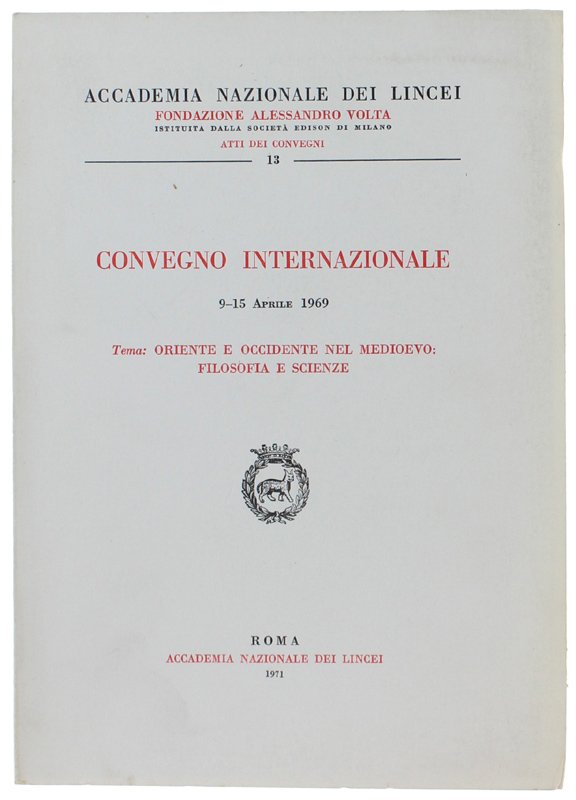 ORIENTE E OCCIDENTE NEL MEDIOEVO: FILOSOFIA E SCIENZE. Convegno internazionale, Roma 9-15 Aprile 1969.
