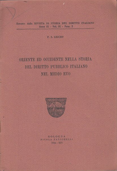 In-8 (Cm 24 x 16,5), pp. 23, brossura editoriale. Estratto dalla rivista di storia del diritto italiano, anno IX, vol. IX, fasc. 2. Dedica di possesso al frontespizio. Ultima carta con croce di dismissione su timbro di biblioteca. Brunitura della carta. BUONO