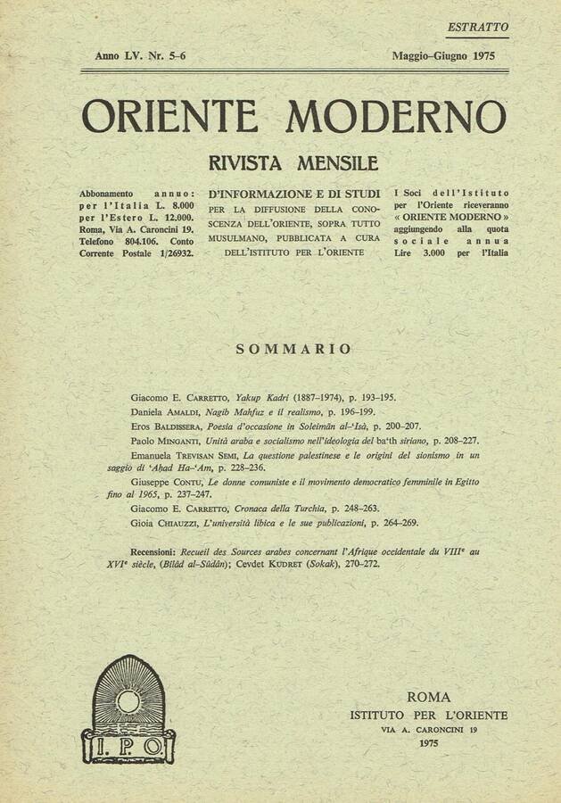 ORIENTE MODERNO ANNO LV N.5-6 ESTRATTO