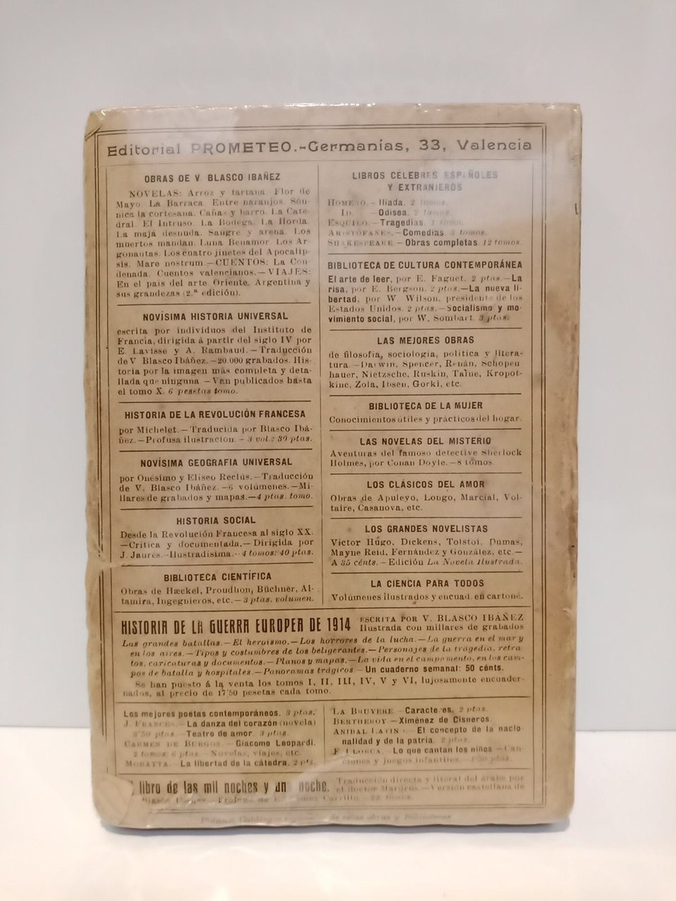 (32.000 ejemplares). [PRIMERA EDICION].- Valencia: F. Sempere y Compañía, Editores, [s.a., pero 1907].- 359 p.; 8º (18,9 x 12,9 cm); Rústica Ed.- RARO.* Cubiertas algo ajadas. Interior en buen estado. La 1ª Ed. de esta obra se publico en la Editorial Sempere de Valencia en el año 1907. Después se publico en la Ed. Prometeo, también de Valencia. LITERATURA Y FILOSOFÍA ESPAÑOLAS DE LOS SIGLOS XIX-XXI Y SU HISTORIA EN GENERAL
