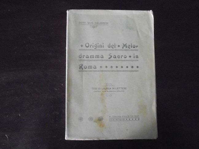 ORIGINI DEL MELODRAMMA SACRO IN ROMA Tesi di Laurea in Lettere Napoli Anno Accademico 1904-05.