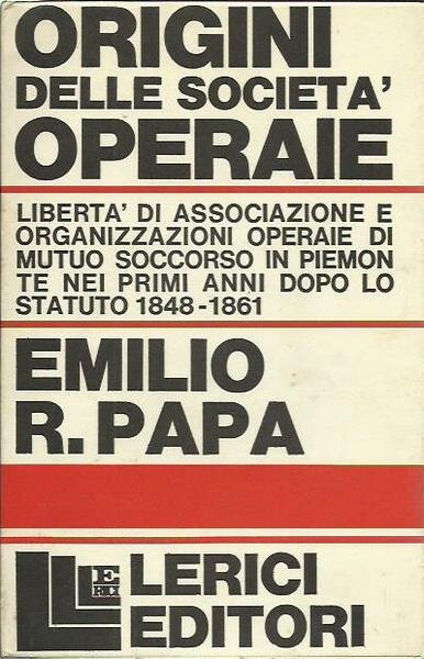 Origini delle società operaie. Libertà di associazione e organizzazioni operaie di mutuo soccorso in Piemonte. 1848-1861