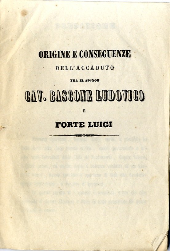 Origini e conseguenze dell'accaduto tra il Signor Cav. Bascone Ludovico e Forte Luigi