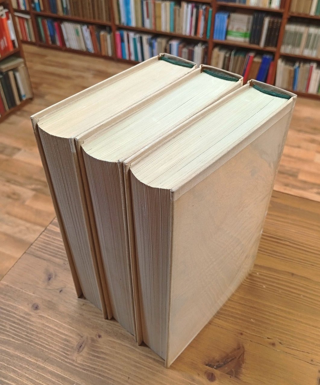 Collana "I Millenni", 14. Edizione a cura di Elio Vittorini - Opera completa di tre volumi, rilegatura originale in tela avana con dorso verde scuro decorato in oro, pp. xviii-546; 561; 598; con tavole a colori fuori testo, anche ripiegate, tratte da dipinti e affreschi medioevali. Acetati protettivi trasparenti danneggiati o mancanti (vedi foto); tenui bruniture ai margini dei piatti; nel complesso l'opera si presenta in ottime condizioni complessive; i volumi sono stati verosimilmente consultati poco, a giudicare dalla paginazione candida e compatta.