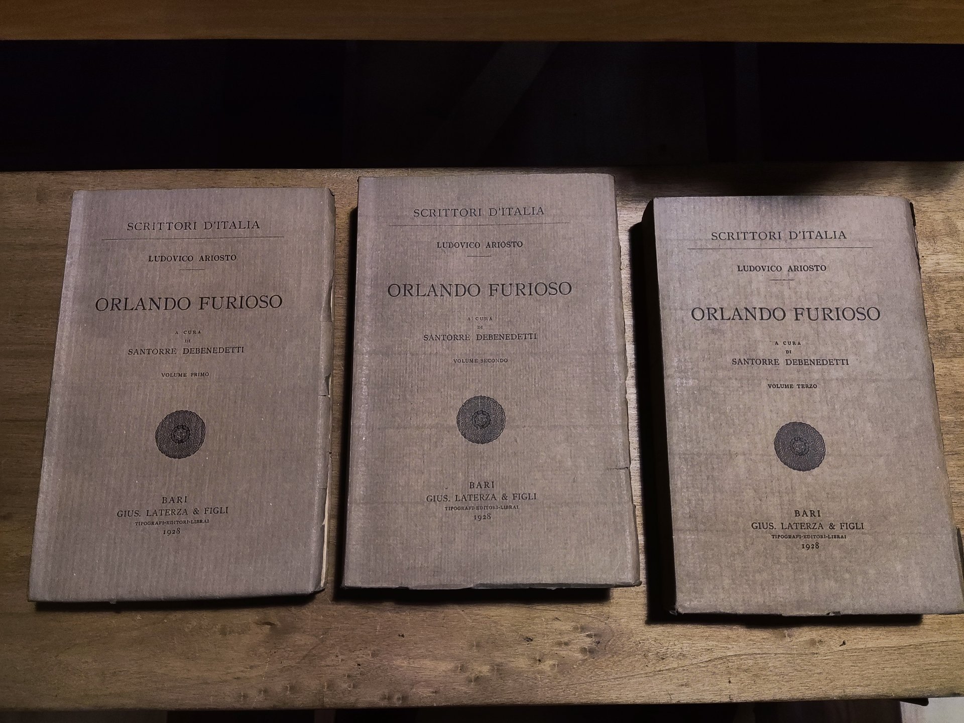 Ludovico Ariosto - Orlando Furioso 3 volumi Laterza - Scrittori d'Italia - Prima edizione 1928 Libri in ottime condizioni, minimi segni del tempo. Non esitate a contattarci per altre foto o richieste. Saremo lieti di soddisfare ogni vostra esigenza.
