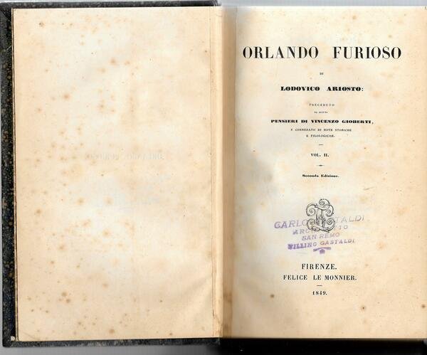 Orlando furioso di L. A. preceduto da alcuni pensieri di Vincenzo Gioberti, e corredato di note storiche e filologiche, in 2 voll.