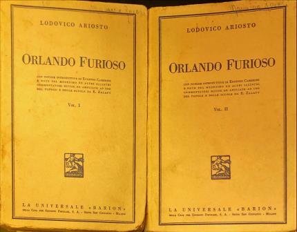 Orlando furioso. Due volumi. Con notizie introduttive di Eugenio Camerini e note del medesimo ed altri illustri commentatori rifuse ed ampliate ad uso del popolo e delle suole da E. Zalapy.