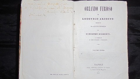 ORLANDO FURIOSO Preceduto da alcuni pensieri di Vincenzo Gioberti e corredato di note storiche e filologiche.