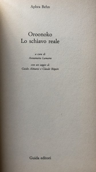 OROONOKO. LO SCHIAVO REALE A CURA DI ANNAMARIA LAMARRA