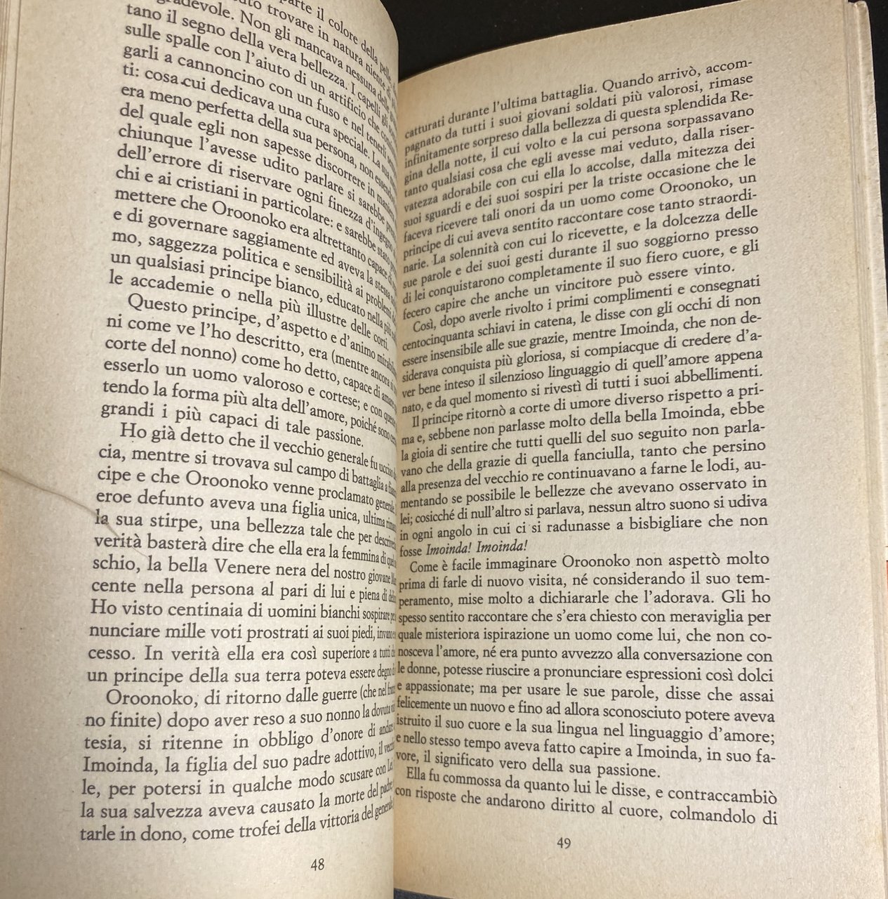 Parole e frasi comuni Aboan adorare amanti Astrea avventure Barbados bella bellezza biografi braccia Buyam capitano Cesare Clemene coraggio corte cuore donne re eroe felice ferite fiume frusta Ghana gioia giovane giuramento Goreau Governatore guerra Imoinda Indiani inglese innamorato Jane Austen autrice Lady lettore libera Lord Willoughby Memoirs mille moglie mondo Montague Summers morire morte Mrs narrativa narratore nave Negri nobile Nobile Selvaggio Noble Savage occhi Oliver Cromwell Onahal onore paese Parham parola persona personaggio piantagione Platt principe racconto romanzo Sackeville-West schiavi schiavitù signore slash sospiri spia storia Surinam tratta Trefry Tuscanio uomini uomo vecchio vendetta verità Viaggi di Gulliver viaggio volto Works