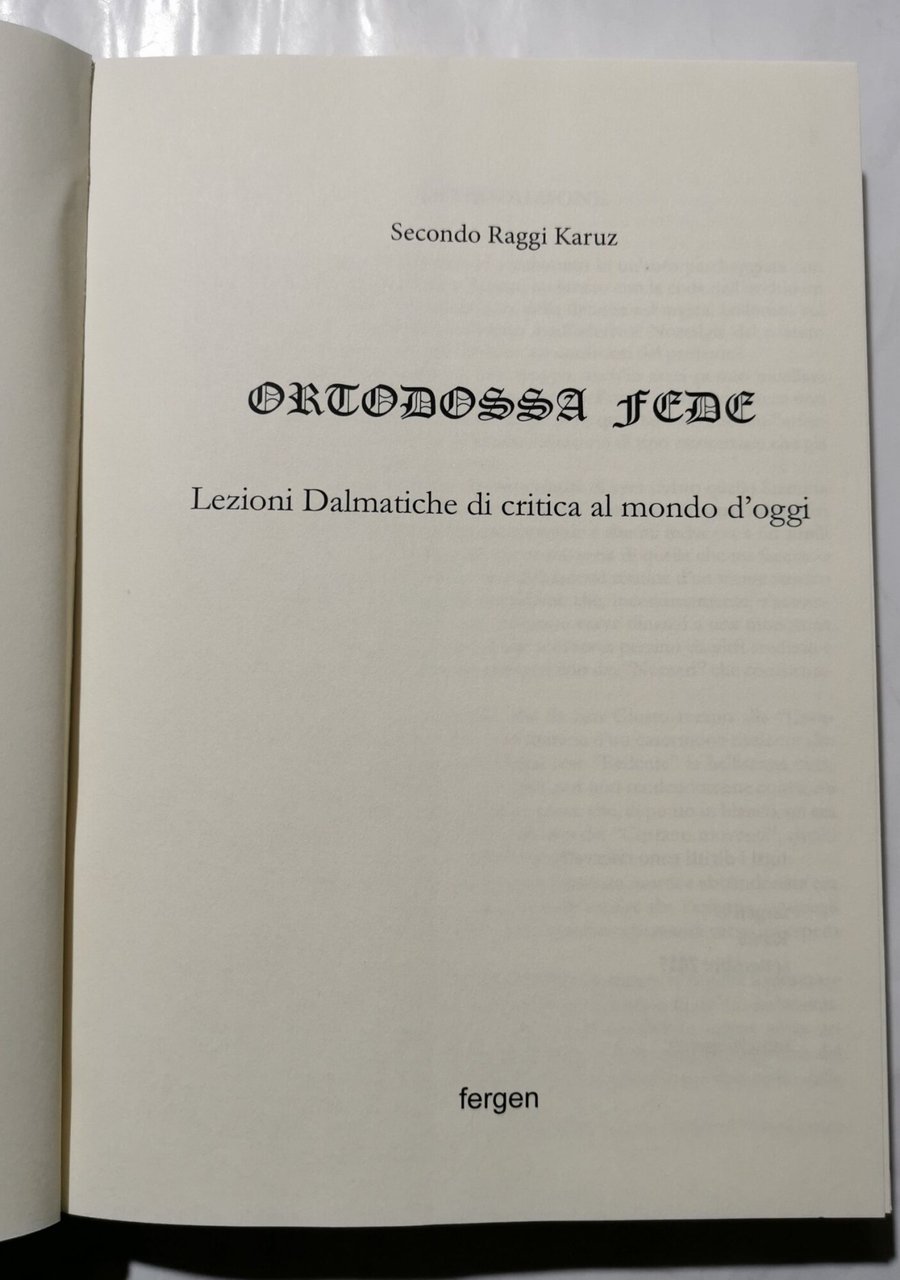 Ortodossa fede -Lezioni dalmatiche di critica al mondo d'oggi.