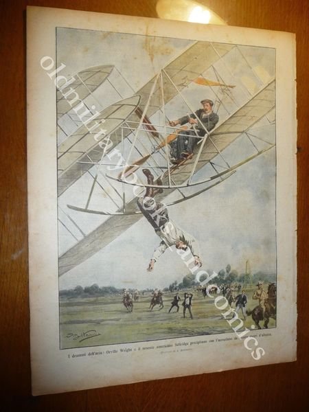 ORVILLE WRIGHT E TEN. USA SELIRIDGE PRECIPITANO CON AEREO POMPIERI A PARIGI 1908